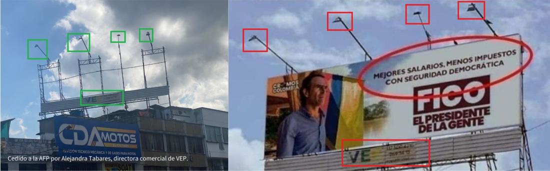 En la siguiente comparación entre una foto tomada por el personal de VEP el 26 de marzo de 2022 y la valla difundida en redes se evidencia que se trata de la misma estructura: