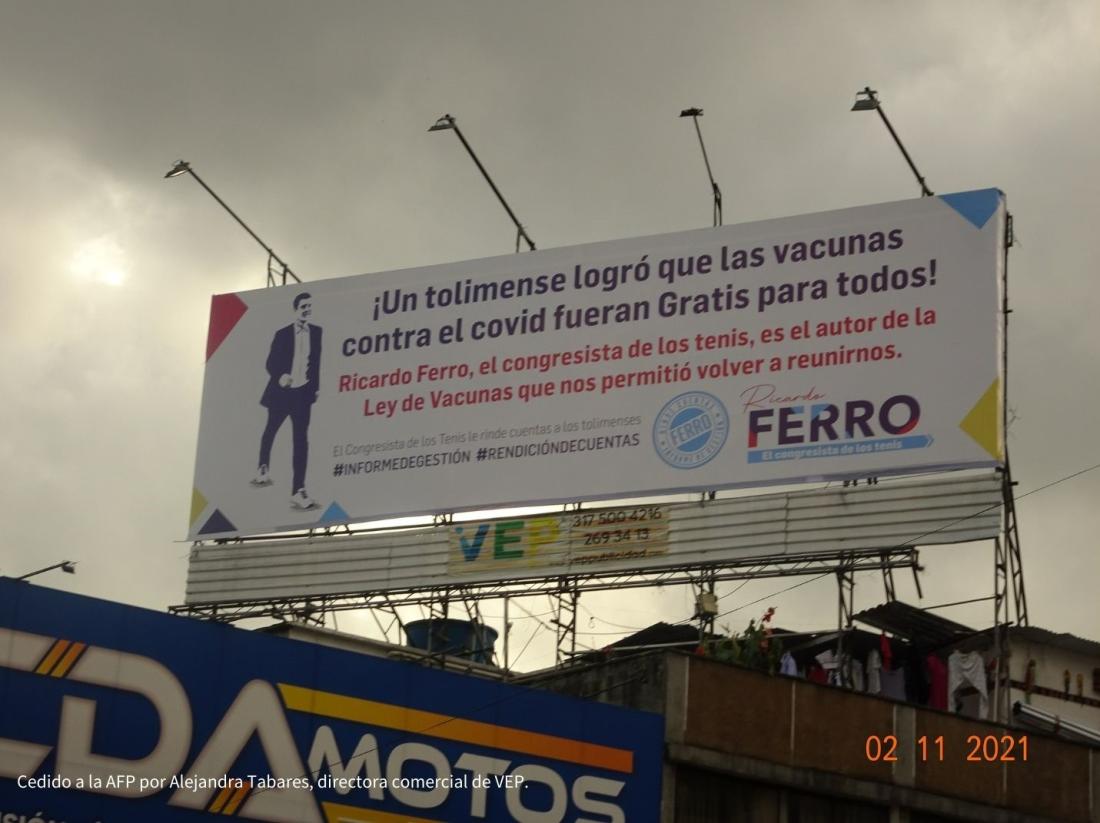 De hecho, la empresa compartió una foto tomada el 2 de noviembre de 2021 en la que se evidencia que el mensaje publicitario más reciente expuesto en el espacio correspondía a la valla del congresista Ferro.