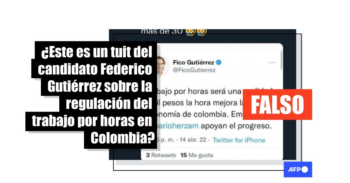 A través de su equipo de prensa, Gutiérrez aseguró a AFP Factual que el tuit en el que supuestamente propone un valor de 6.000 pesos por hora de trabajo "es falso".