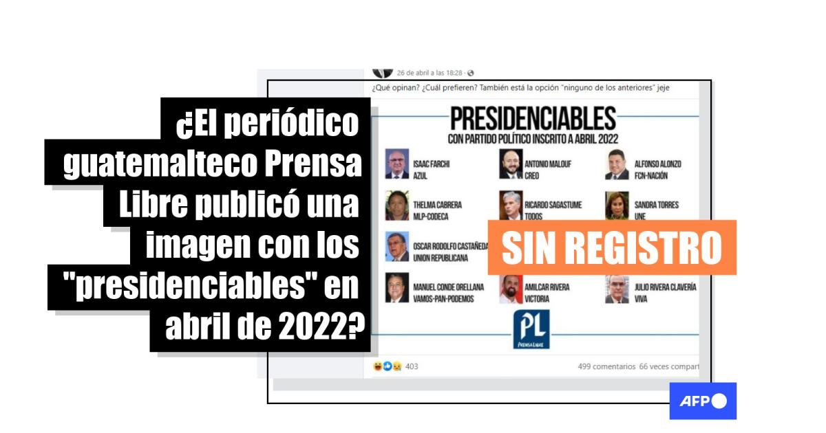 Antonio Barrios Alvarado, jefe de redacción de Prensa Libre, confirmó a AFP Factual que el medio “no ha publicado ninguna información relacionada a los posibles candidatos presidenciables para 2023”.