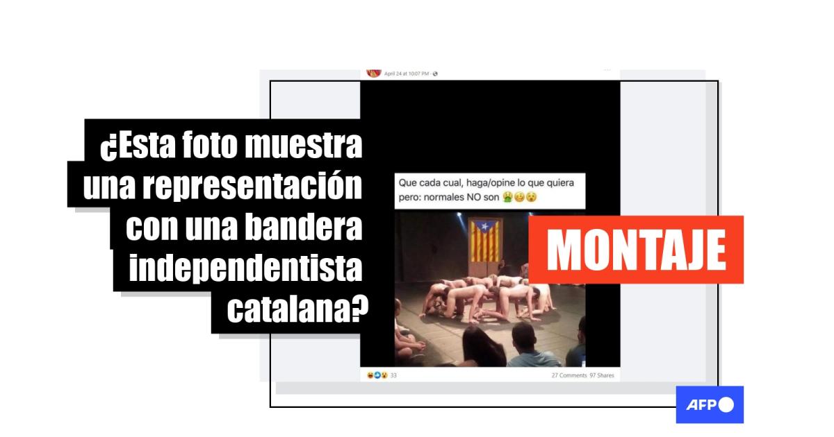 La búsqueda también llevó a una nota del periódico brasileño Folha de Sao Paulo que recordó en una galería de fotos de 2017 la actuación, entre otras polémicas teatrales, y a esta página, dedicada a la actualidad cultural brasileña, que publicó una opinión sobre la obra, ilustrada con la misma instantánea. En todos esos artículos, la fotografía aparece sin rastro de la bandera independentista catalana.