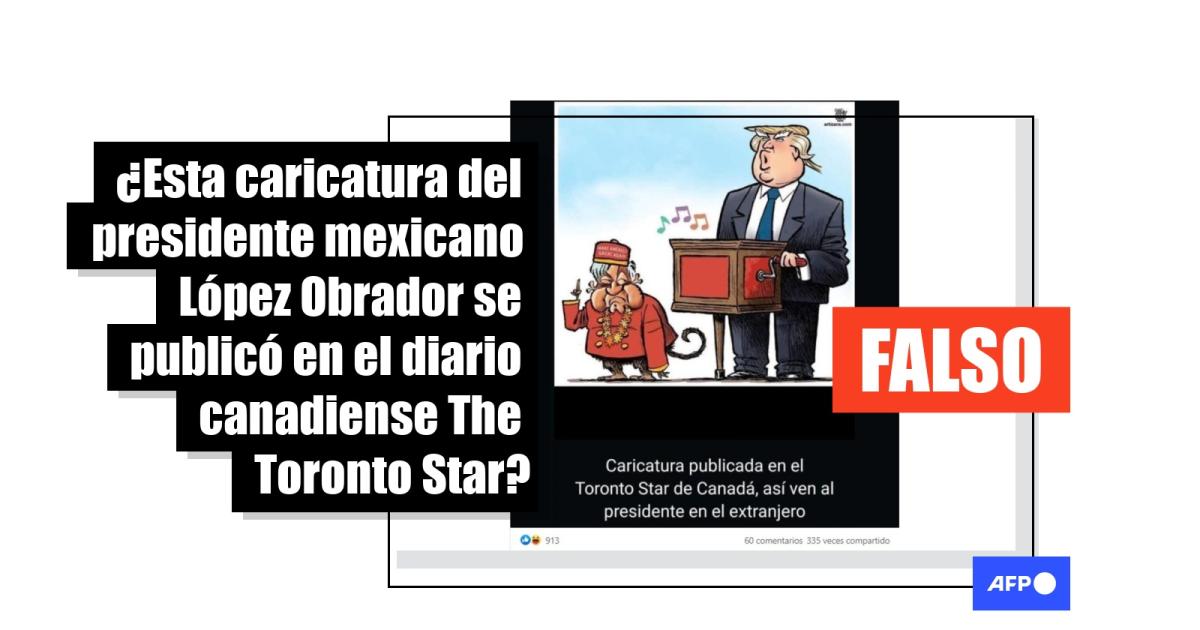 Una pesquisa en este sitio con las palabras clave “López Obrador” arrojó cuatro caricaturas, ninguna de ellas similar a la que se ha viralizado. Un rastreo de imágenes en Google con los apellidos del presidente mexicano limitado a contenidos publicados en The Toronto Star tampoco llevó a ningún dibujo con el presidente mexicano.