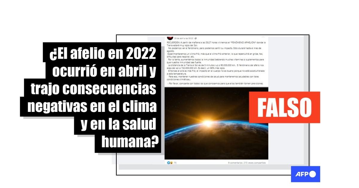 Sin embargo, la distancia entre nuestro planeta y el Sol “varía muy poco” y la diferencia del afelio con el perihelio no excede un 3%, explicó a AFP Factual Andrea Sánchez, doctora en Astronomía por la Universidad de la República, en Uruguay.