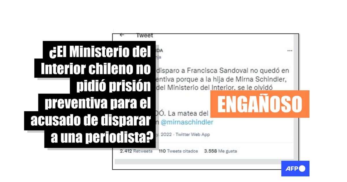“El autor del disparo a Francisca Sandoval no quedó en prisión preventiva porque a la hija de [la periodista] Mirna Schindler, querellante del Ministerio del Interior, se le olvidó solicitarla”, dicen las entradas en Twitter, Facebook (1, 2) e Instagram.