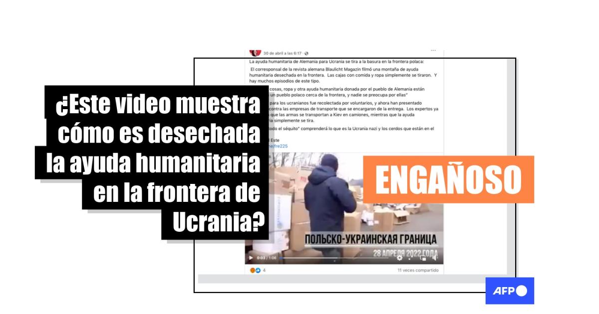 “La ayuda humanitaria de Alemania para Ucrania se tira a la basura en la frontera polaca: El corresponsal de la revista alemana Blaulicht Magazin filmó una montaña de ayuda humanitaria desechada en la frontera. Las cajas con comida y ropa simplemente se tiraron (...) Los expertos ya comentan que las armas se transportan a Kiev en camiones, mientras que la ayuda humanitaria simplemente se tira”, dicen las entradas difundidas en Facebook y Twitter.
