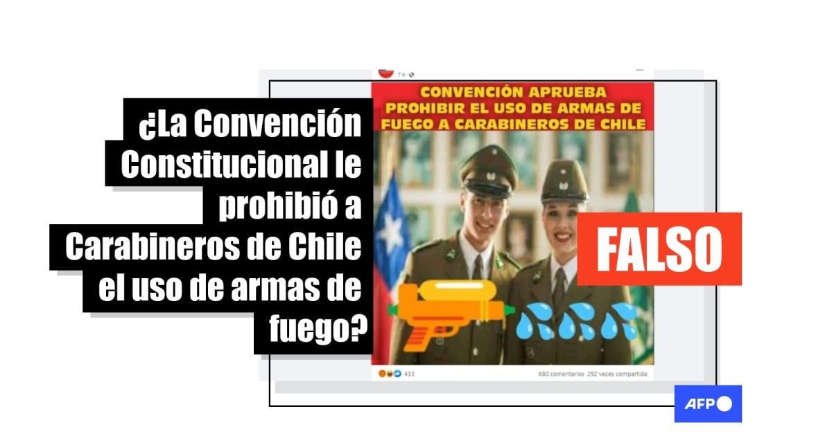 Asimismo, Ricardo Montero, convencional coordinador de la Comisión de Sistema Político, explicó al equipo de verificación de la AFP que “las armas están prohibidas en términos generales en la misma línea que ya lo hace la Constitución actual”.