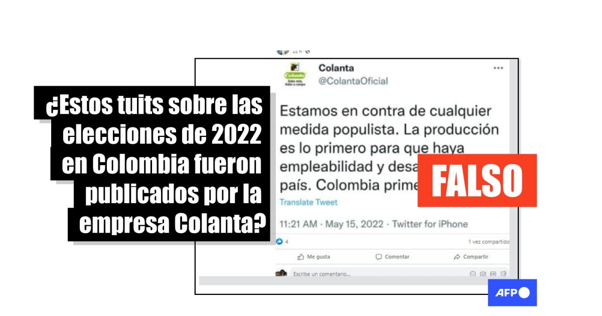 El 15 de mayo de 2022, Colanta publicó un comunicado en el que advirtió que su cuenta oficial en Twitter había sido “clonada” e incluyó una captura de pantalla de la cuenta apócrifa hallada por la AFP.