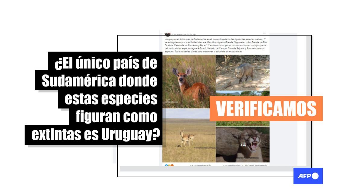 Las únicas especies mencionadas en las publicaciones virales que figuran como extintas solo en Uruguay, y no en el resto de Sudamérica, son el yaguareté (o jaguar) y el ciervo de los pantanos. El jaguar también está extinto en El Salvador, país centroamericano, no de Sudamérica.