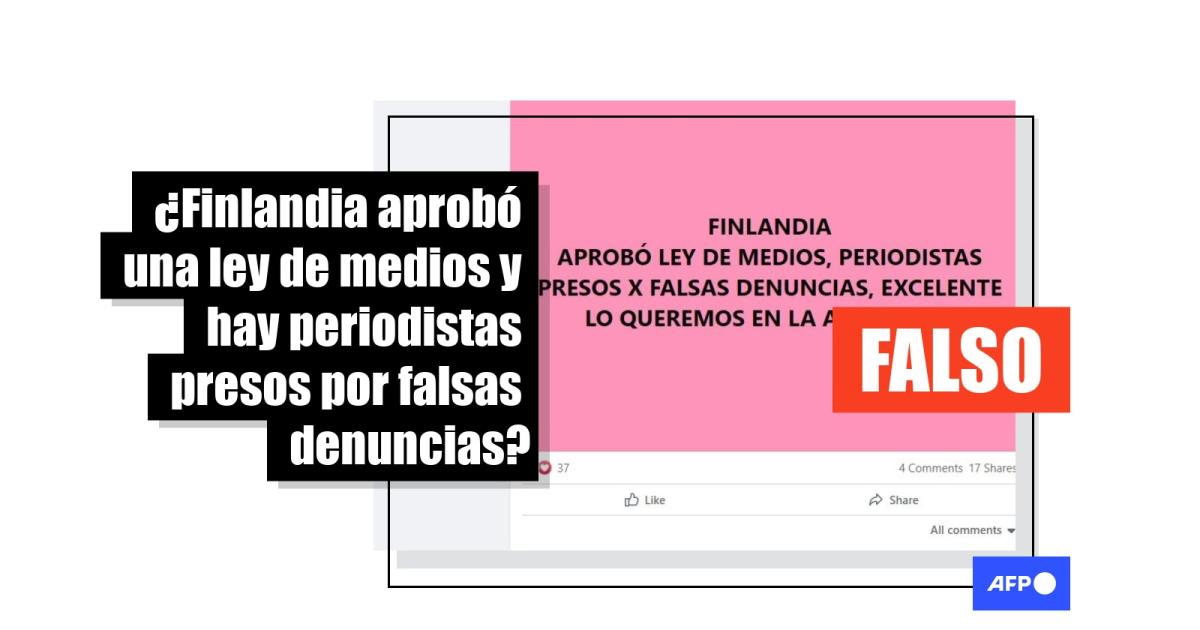 “Finlandia aprobó ley de medios, periodistas presos x falsas denuncias”, dice esta usuaria, mientras que en esta publicación se añade la cifra de “28 periodistas presos” por esas supuestas falsas denuncias.