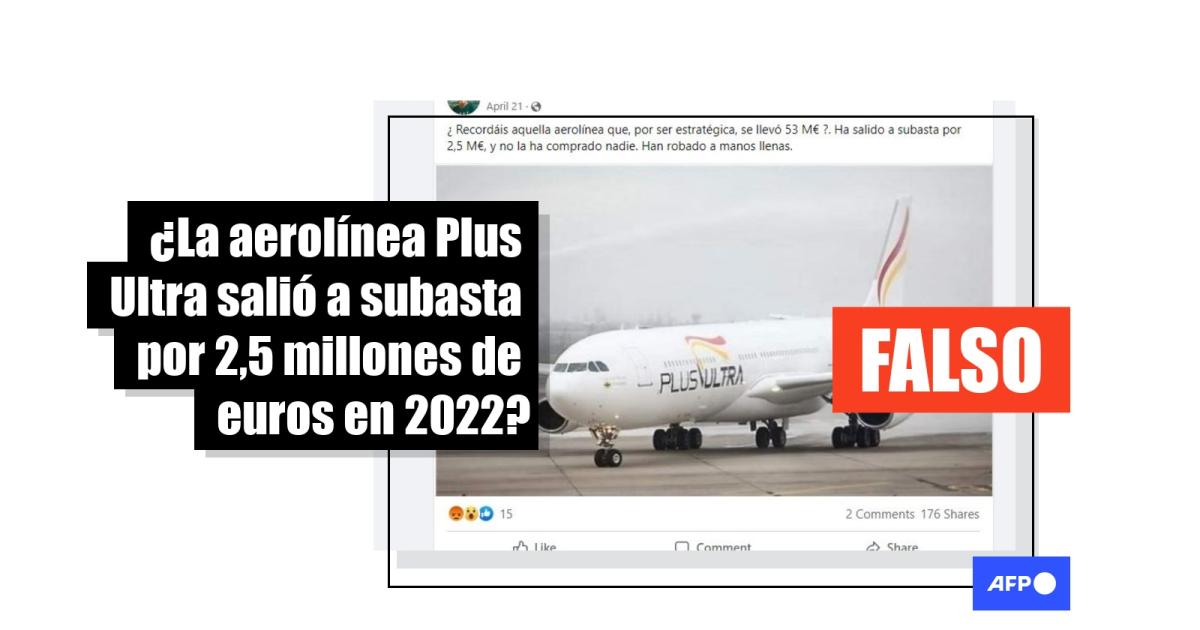 “¿Recordáis aquella aerolínea que, por ser estratégica, se llevó 53 M€ ?. Ha salido a subasta por 2,5 M€, y no la ha comprado nadie. Han robado a manos llenas”, se lee en esta publicación en Facebook, con la fotografía de un avión de la aerolínea Plus Ultra. Una pieza similar también ha sido difundida en Twitter.