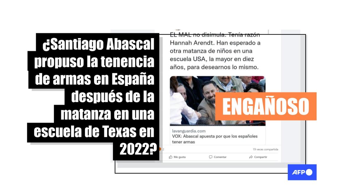 A diferencia de lo que señalan las publicaciones, la propuesta de Vox no se produjo tras el tiroteo en Texas, ni siquiera en 2022. Los artículos son de marzo de 2019 (1, 2) y explican que el líder de Vox había pedido un “cambio radical urgente en la ley para que los españoles puedan disponer de un arma en su casa que puedan utilizar en situaciones de amenaza real para su autodefensa”.