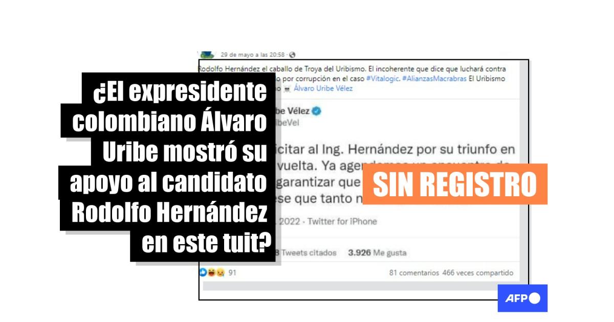Un rastreo en Google con las palabras clave “Álvaro Uribe” y la frase viral no condujo a indicios de que el expresidente haya mostrado su apoyo político a Hernández a través de alguna declaración oficial o en medios de comunicación.