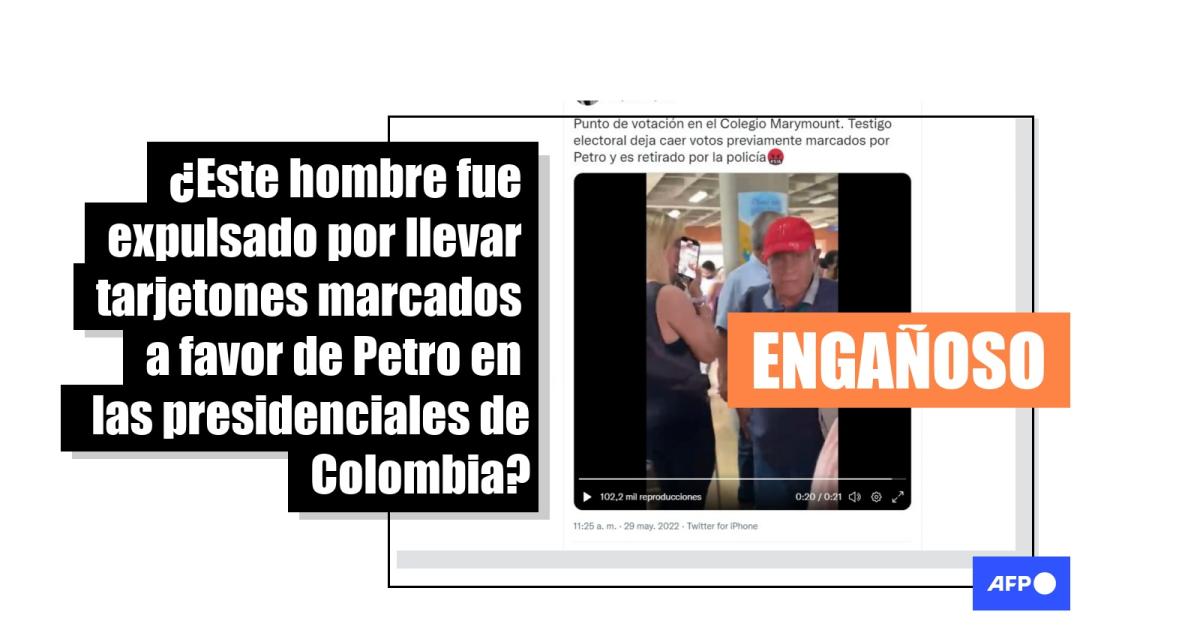 Sin embargo, las autoridades explicaron a AFP Factual que la expulsión del hombre del recinto electoral no se debió a que portara tarjetones marcados a favor de Petro y observadores electorales no han vinculado el hecho a la entrega votos diligenciados.
