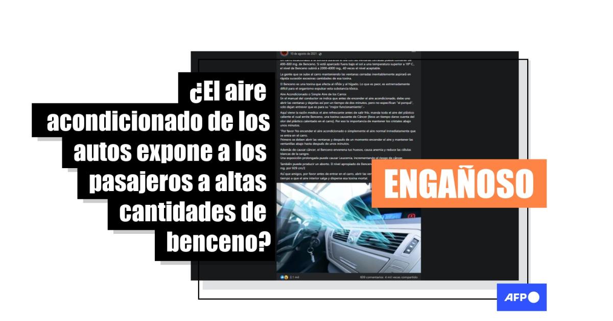 De acuerdo con diferentes estudios científicos revisados por la AFP, las concentraciones de benceno en el aire acondicionado de los automóviles son muy bajas en comparación con los niveles considerados como riesgosos.