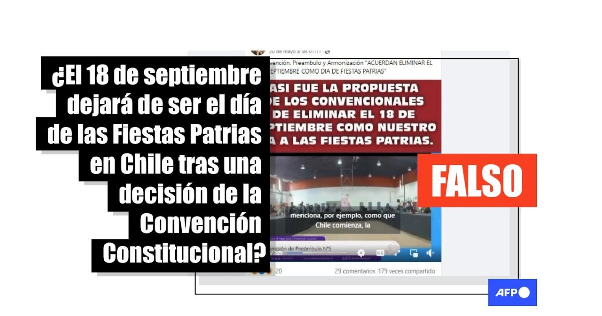 "ACUERDAN ELIMINAR EL 18 DE SEPTIEMBRE COMO DIA DE FIESTAS PATRIAS", dice la descripción de una publicación en Facebook, junto a un video de un fragmento de una sesión de la Comisión de Preámbulo, que forma parte de la Convención Constitucional, organismo encargado de redactar una nueva Carta Magna para Chile.