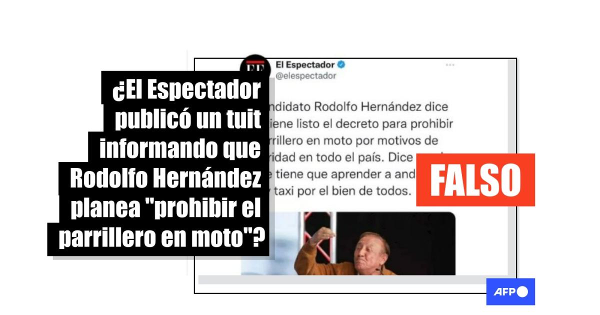 El Espectador no tuiteó que Rodolfo Hernández prohibirá el segundo pasajero en moto en Colombia