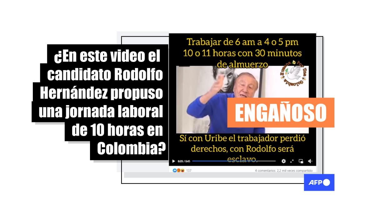 Sin embargo, no se encontraron registros de que Hernández haya propuesto incrementar el tiempo de trabajo legal en Colombia. Esa reforma tampoco aparece en su programa de gobierno.