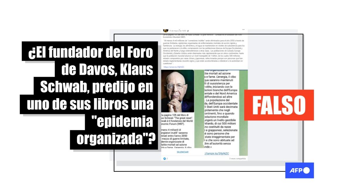 Algunas publicaciones atribuyen la cita al libro de Schwab "Covid-19: El gran reinicio", publicado en 2020 y que toma su nombre de una iniciativa del Foro Económico Mundial para revivir la economía global interrumpida por la pandemia. La propuesta ha sido objeto de críticas por parte de teóricos de la conspiración, que la acusan de tener el propósito oculto de reducir las poblaciones, según informó la AFP.