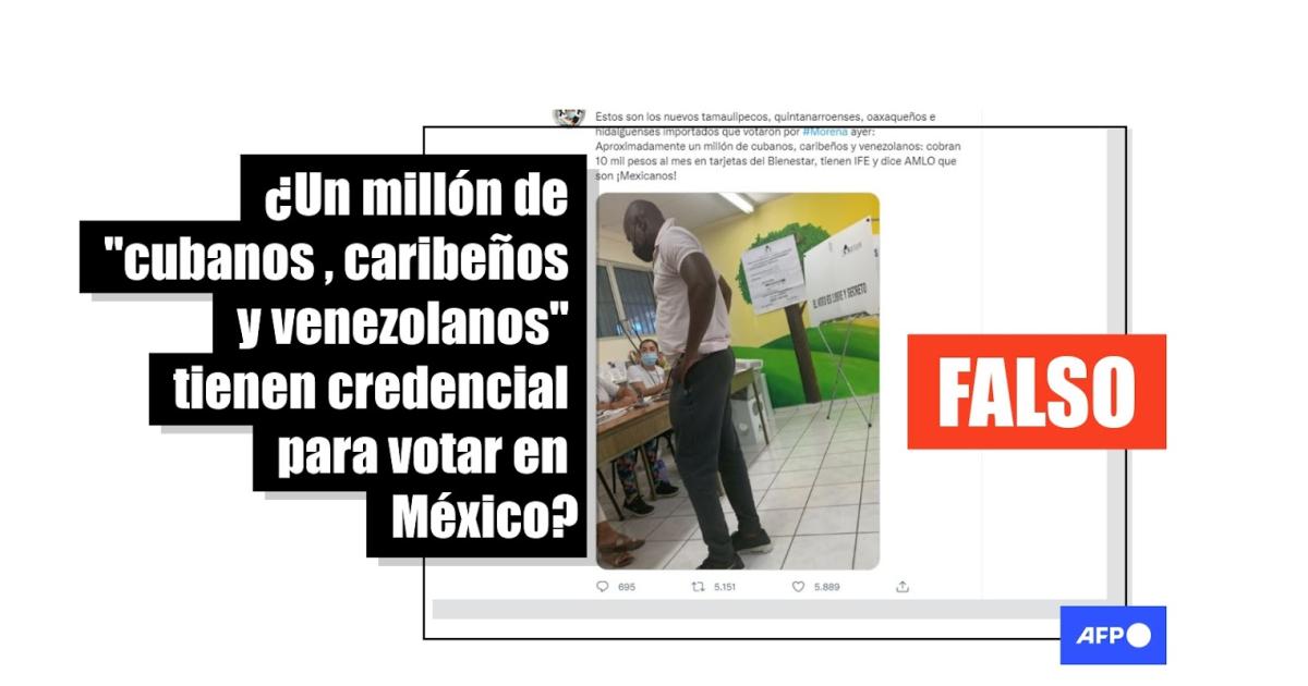 “Estos son los nuevos Tamaulipecos, Quintanarroenses, Oaxaqueños e Hidalguenses importados que votaron por Morena : Aproximadamente un millón de Cubanos. Caribeños y Venezolanos: cobran 10 mil pesos al mes en tarjetas del Bienestar, tienen INE [credencial] y dice AMLO [el presidente Andrés Manuel López Obrador] que son ¡Mexicanos!”, aseguran las entradas en Facebook y Twitter.