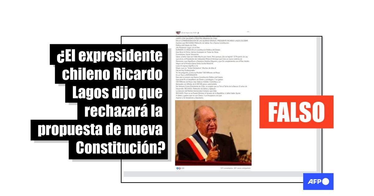 Consultado por la AFP el 13 de junio de 2022 el equipo de prensa del expresidente Lagos señaló que las publicaciones viralizadas en redes son falsas y que “no hay ninguna declaración de esas características emitida por el expresidente Ricardo Lagos” y que él “no ha emitido ninguna declaración sobre si aprueba o rechaza la nueva Constitución”.
