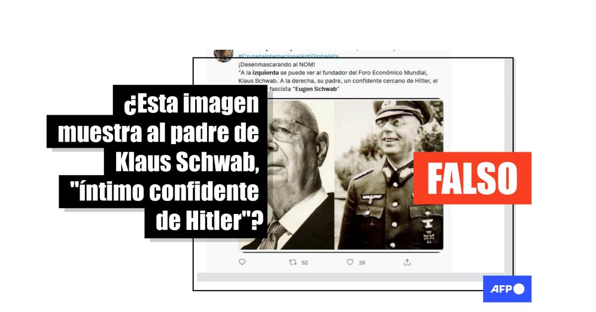Contactada por la AFP, el área de prensa del Foro Económico Mundial informó que la afirmación de que el hombre uniformado es Eugen Schwab “es completamente falsa y una calumnia contra la familia de Klaus Schwab". También confirmó que la imagen disponible en Family Search y de Geni corresponde al padre de su fundador.