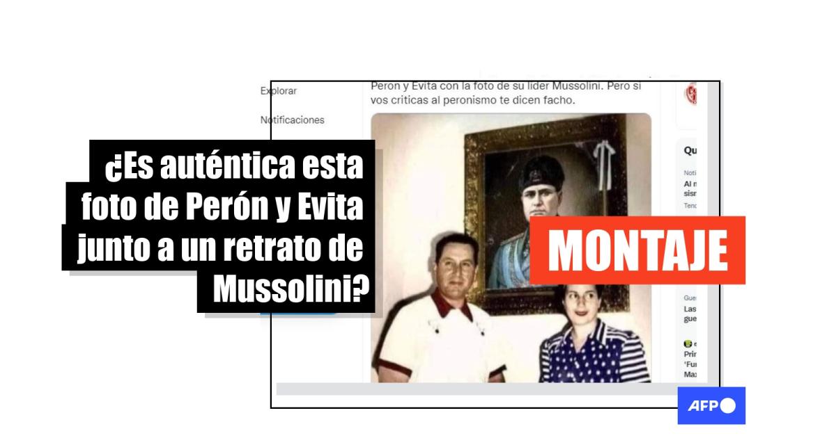 Las publicaciones, compartidas en Twitter y Facebook (1, 2, 3) y que habían sido difundidas en febrero de 2022, aseguran que la imagen muestra a “Perón y Evita con la foto de su líder Mussolini”.