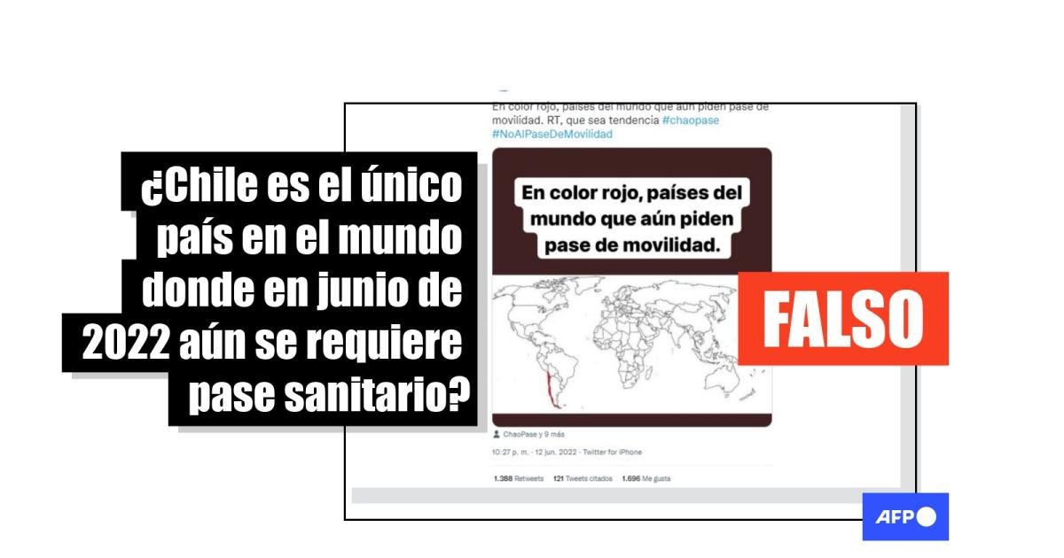 “En color rojo, países del mundo que aún piden pase de movilidad. RT, que sea tendencia #chaopase #NoAlPaseDeMovilidad”, dicen publicaciones en Twitter y en Facebook (1, 2).