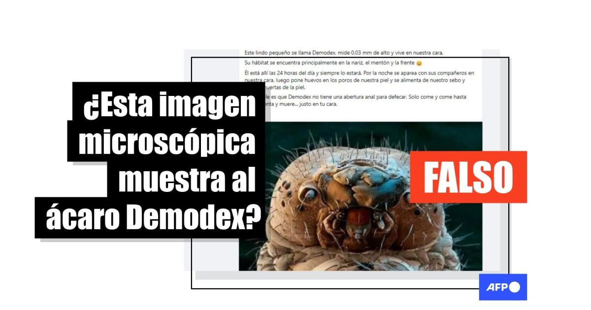 Las publicaciones circulan en Facebook (1, 2), Instagram (1, 2) y Twitter (1, 2). “Este lindo pequeño se llama Demodex, mide 0.03 mm de alto y vive en nuestra cara. Su hábitat se encuentra principalmente en la nariz, el mentón y la frente”, aseguran.