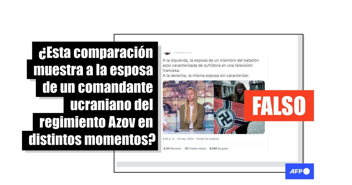 Una búsqueda inversa de la fotografía de Kateryna Prokopenko llevó a una entrada del medio francés BFM TV, publicada el pasado 13 de mayo, sobre una entrevista en la que pedía ayuda a la comunidad internacional para evacuar a su esposo y otros soldados de la planta siderúrgica de Azovstal.