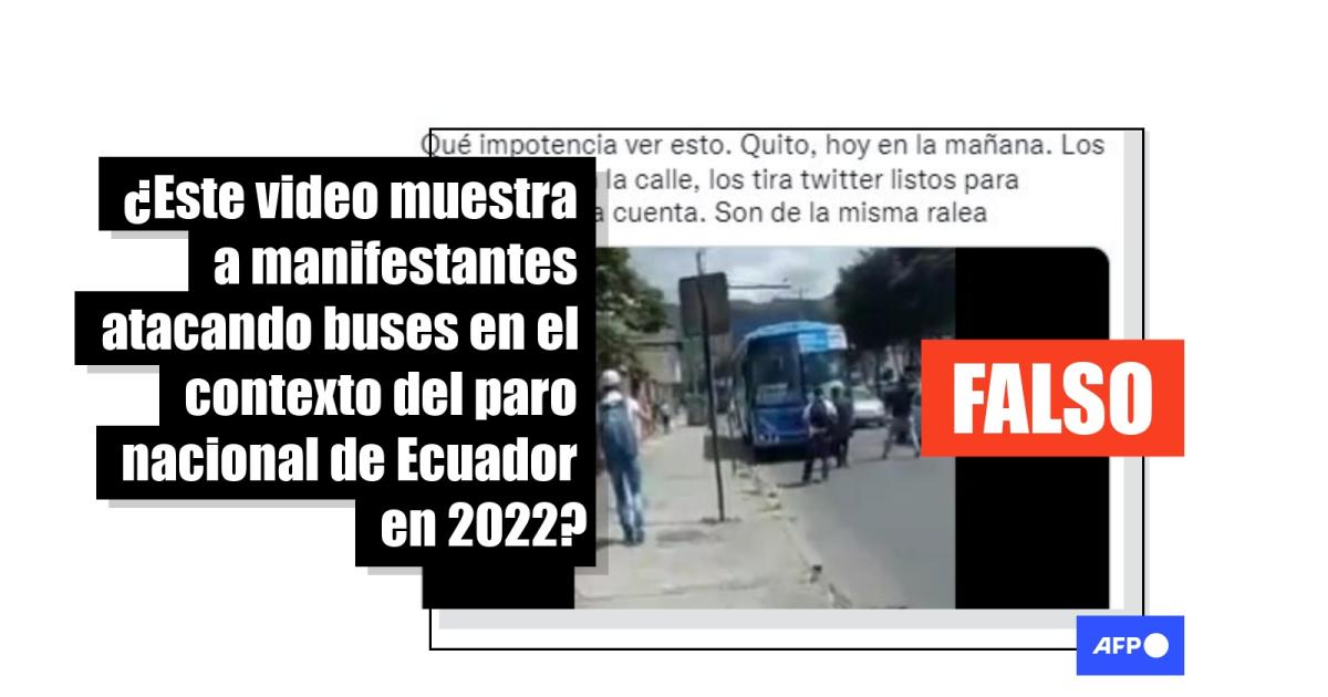 Otras piezas de desinformación sobre el paro nacional (1, 2, 3) de Ecuador en 2022 ya han sido verificadas por la AFP, incluido un video que atribuye el ataque a buses a manifestantes y que ocurrió en 2019.