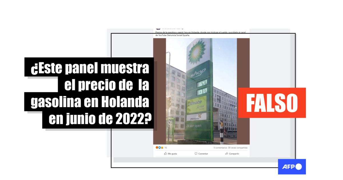 “Precios de la gasolina y gasoil, hoy en Holanda, donde nos triplican el sueldo”, se queja un usuario en redes sociales, que adjunta una foto de un cartel de precios de combustibles de gasolineras BP. La misma instantánea circula más de 300 veces en Facebook (1, 2) y en Twitter (1, 2), en junio de 2022. En la fotografía se puede ver que la gasolina euro 95 se vendía a 1,649 y el diésel, a 1,319, sin especificar la moneda.