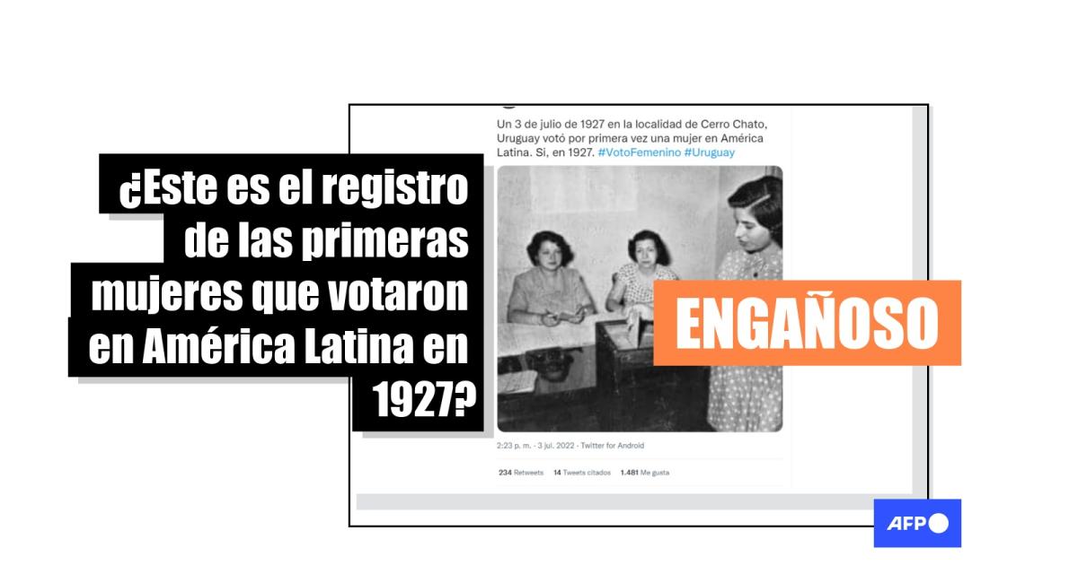 “Un 3 de julio de 1927 en la localidad de Cerro Chato, Uruguay votó por primera vez una mujer en América Latina. Si, en 1927”, dicen las publicaciones en Facebook (1, 2) y Twitter (1, 2), difundidas al menos desde 2020.
