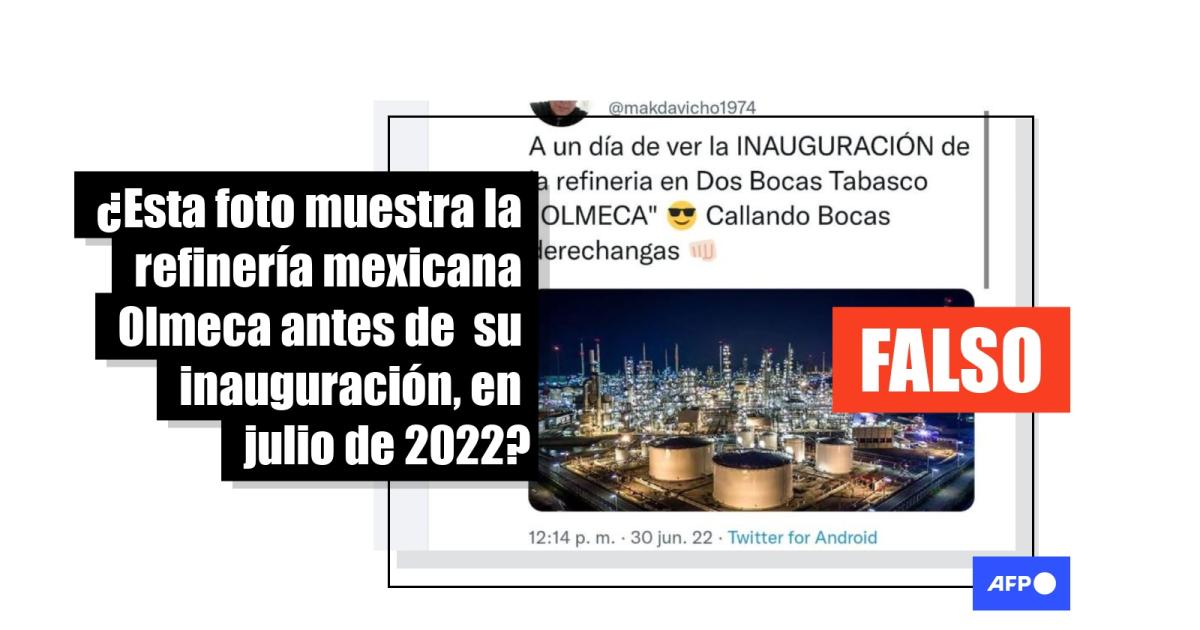 “A un día de ver la INAUGURACIÓN de la refineria en Dos Bocas Tabasco "OLMECA" Callando Bocas derechangas”, dicen las publicaciones en Twitter (1, 2) y Facebook (1, 2) con la fotografía.