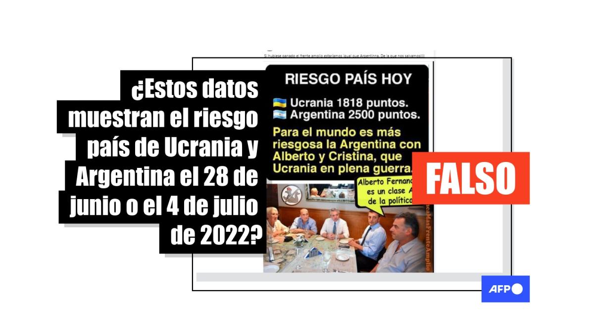 Ni el 28 de junio ni el 4 de julio de 2022 el riesgo país de Argentina era superior al de Ucrania