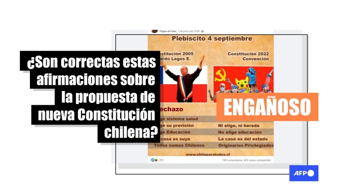 El 26 de mayo de 2022, AFP Factual verificó 21 afirmaciones sobre la nueva Constitución, de las cuales 18 eran falsas o engañosas. Varias de ellas se repiten en esta lista: