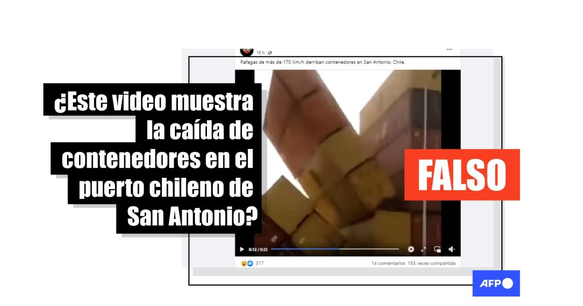 “Rafagas de más de 170 KM/H derriban contenedores en San Antonio, Chile”, aseguran publicaciones en Facebook (1, 2) que difunden el video de casi medio minuto.