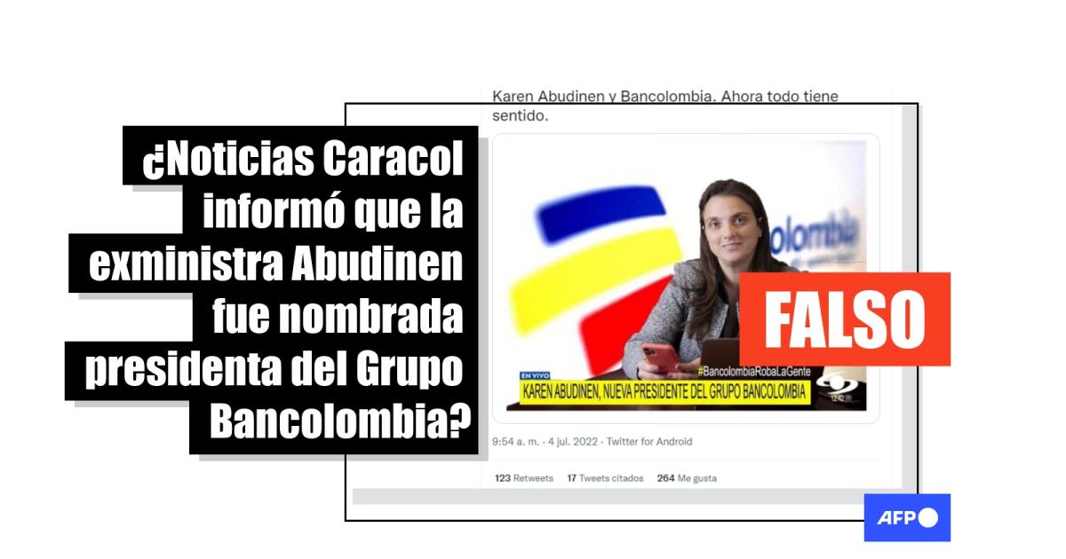 Noticias Caracol no anunció que Bancolombia nombró presidenta a la exministra Abudinen