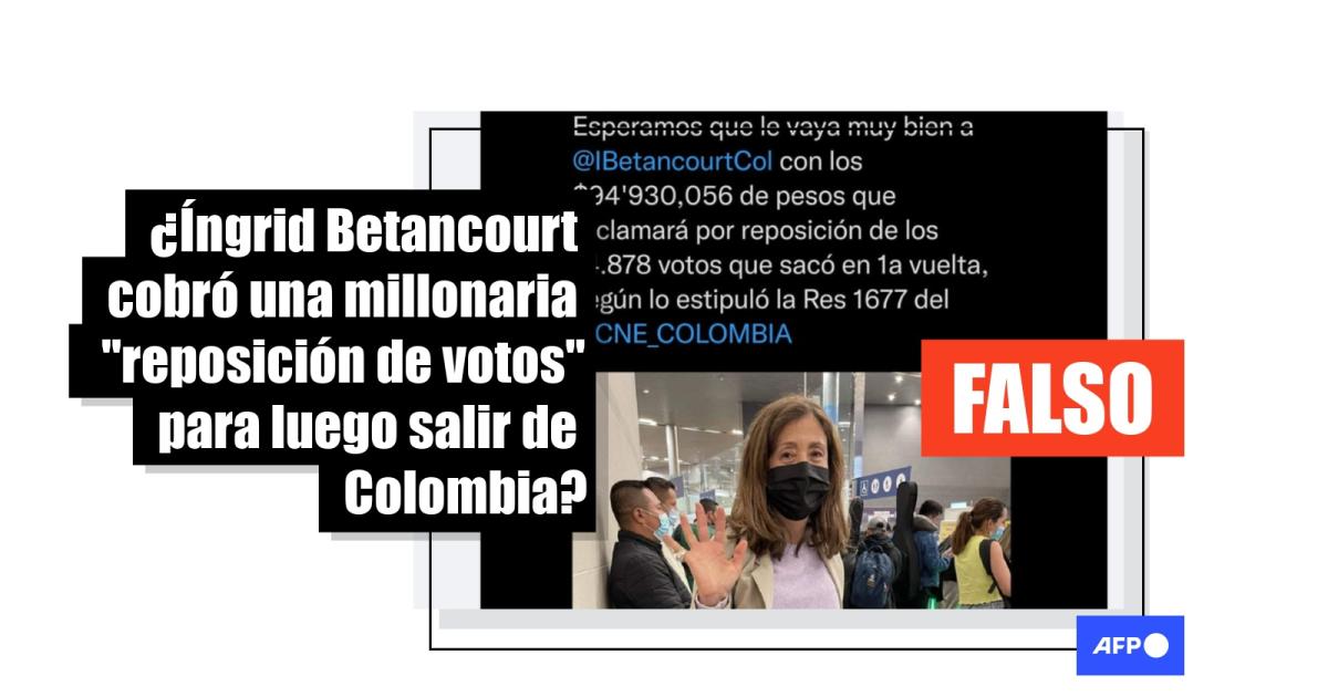 La excandidata Íngrid Betancourt no recibió en 2022 "reposición" económica de votos en Colombia