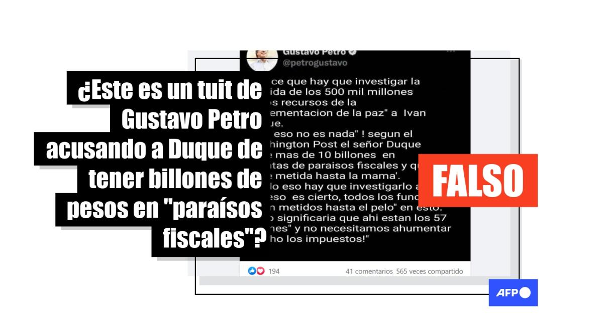 Es falso un supuesto tuit de Petro que vincula a Iván Duque en Colombia con paraísos fiscales