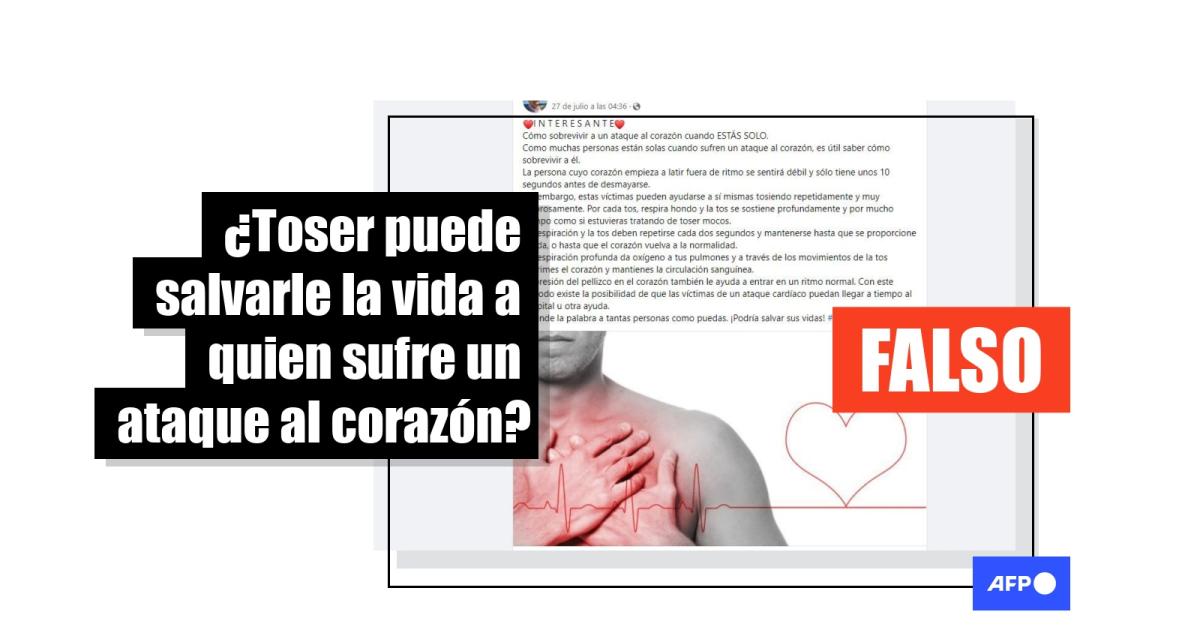 "La tos nunca ha sido eficaz para reducir un infarto o sus consecuencias, ni el riesgo subyacente de parada cardíaca", explicó el 25 de julio de 2022 al equipo de verificación de la AFP Nicolas Lamblin, jefe de cardiología de urgencias y cuidados intensivos del Hospital Universitario del Norte de Europa, CHU, en Lille, Francia. "En el caso de una parada cardíaca, la persona ha perdido totalmente la conciencia, por lo que en cualquier caso no puede oír, responder o toser", añadió.