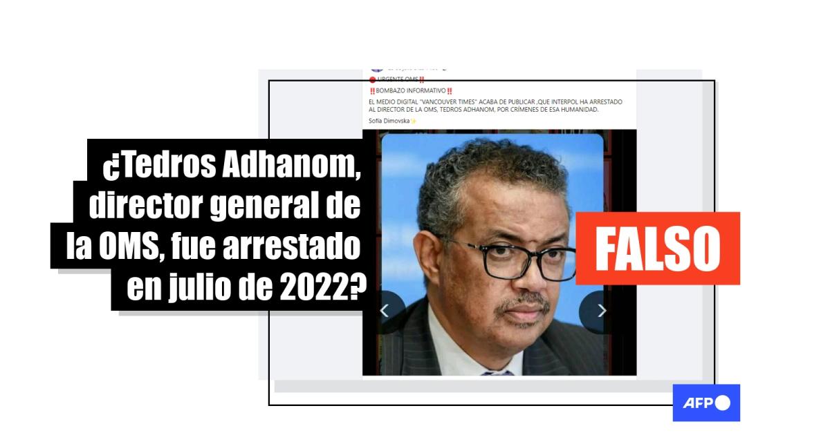 “Tedros Adhanom Ghebreyesus, actual director de la Organización Mundial de la Salud (OMS) ha sido detenido por la Interpol y está en prisión por crímenes de lesa humanidad y genocidio”, se lee en el texto compartido más de 600 veces en Facebook y Twitter.