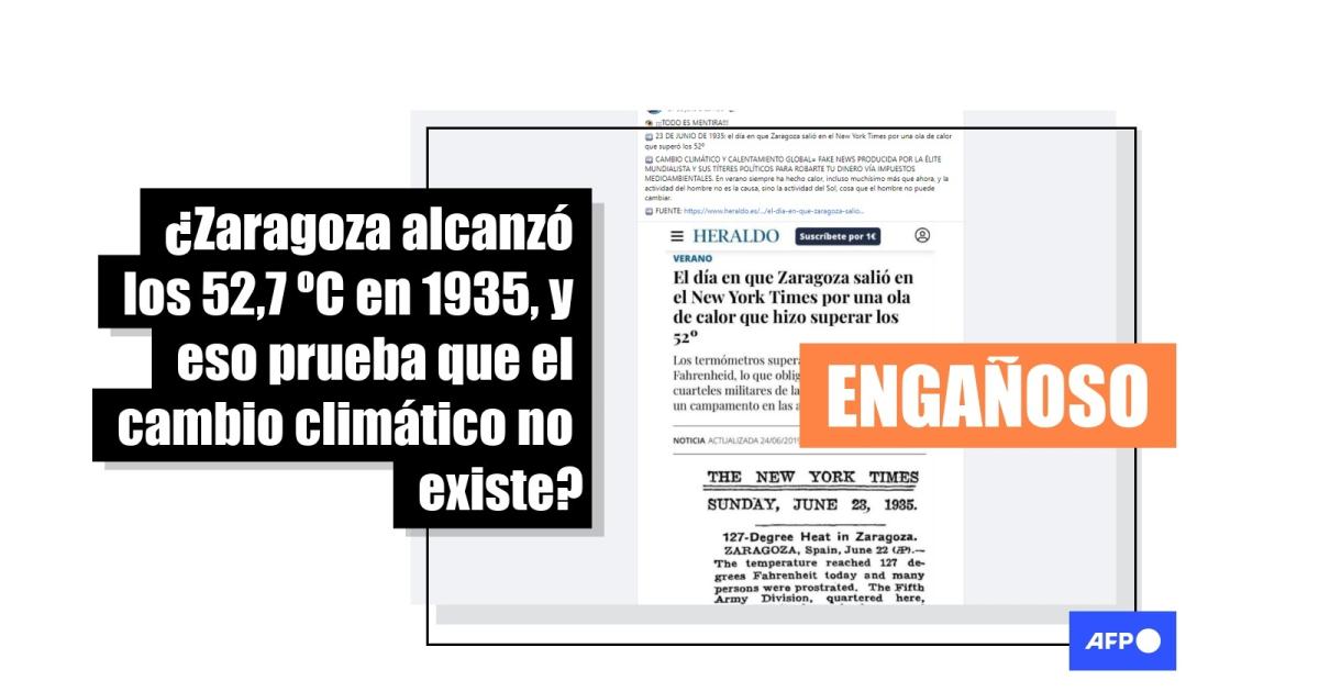 La AFP ya verificó contenidos que ponen en duda la existencia del cambio climático mostrando información de temperaturas elevadas puntuales en el pasado. Por ejemplo, circuló una imagen de una portada que alertaba que España había registrado unas temperaturas de 50 grados en la década de 1950.