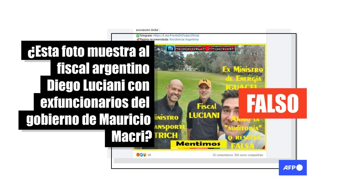 La imagen ha sido compartida más de 3.000 veces en Facebook (1, 2) y Twitter (1, 2), con comentarios como “El fiscal Luciani en una reunión de trabajo”, “Esta foto revela la imparcialidad” y “El fiscal de la mafia judicial se saca fotos con funcionarios macristas”.