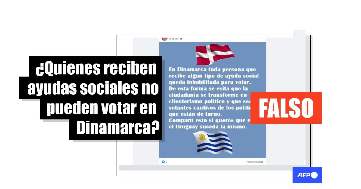 “En Dinamarca toda persona que recibe algún tipo de ayuda social está inhabilitada para votar. De esta forma se evita que la ciudadanía se transforme en clientelismo político y que sean votantes cautivos. Compartí esto si queres que en Uruguay suceda lo mismo”, aseguran las publicaciones en Facebook (1, 2) y Twitter.