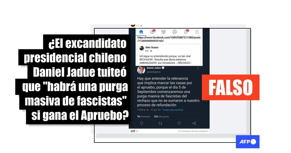 Daniel Jadue no publicó el tuit sobre una “purga masiva de fascistas” si gana el Apruebo en Chile