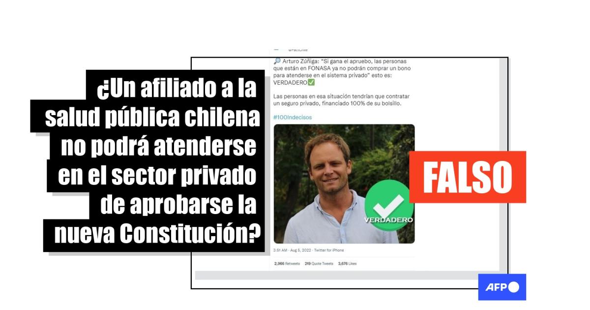 Las publicaciones virales van acompañadas de la frase “#100Indecisos”, un programa de debate sobre la propuesta constitucional del canal chileno Mega. El día que se publicó por primera vez el tuit, el 4 de agosto de 2022, Arturo Zúñiga participó de dicha instancia, en la que se habló específicamente de la salud en el proyecto de Carta Magna.