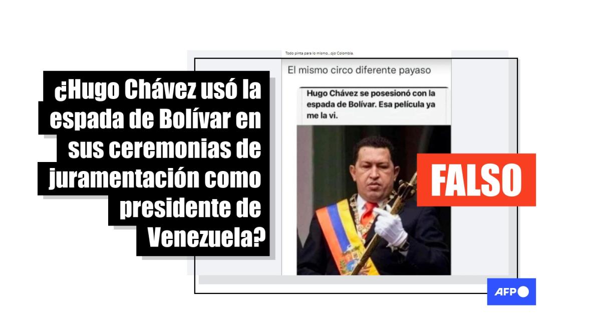 Tras una revisión de los registros de esas ceremonias (1, 2, 3, 4), la AFP no halló evidencia de que Chávez hubiese portado o exhibido en esas ocasiones la espada de Bolívar que está en poder del Estado venezolano.
