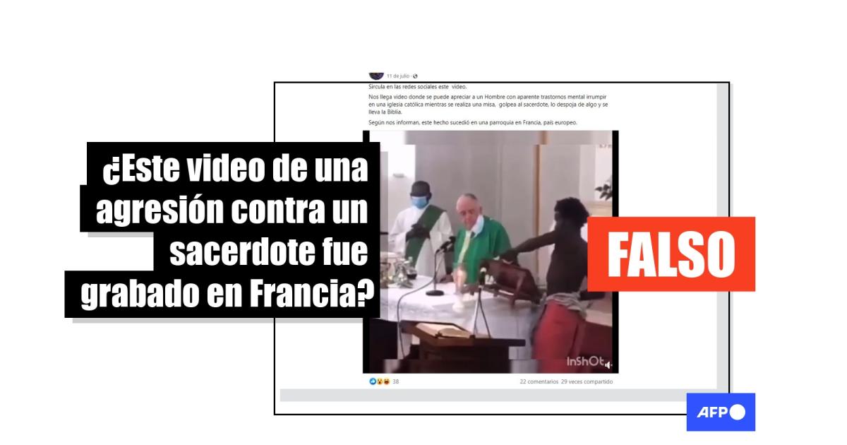Este video de un hombre atacando a un sacerdote fue grabado en Guyana, no en Francia