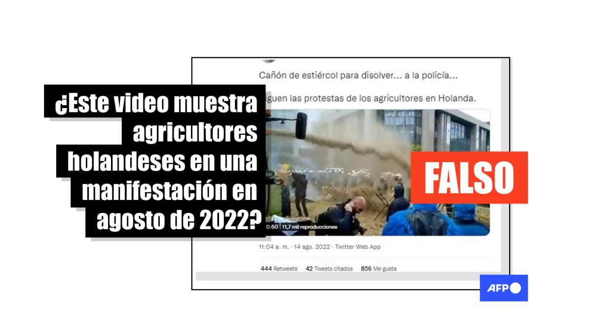 “Los agricultores holandeses se defienden a su manera contra las cargas de la policía antidisturbios”, “Cañón de estiércol para disolver... a la policía... Siguen las protestas de los agricultores en #Holanda”, dicen publicaciones en Facebook (1, 2), Twitter (1, 2) y Telegram.