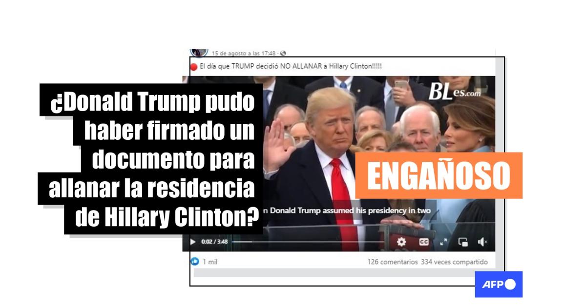 "Cuando Donald Trump asumió su presidencia en 2017, tuvo la posibilidad de firmar un documento para allanar la residencia de Hillary Clinton, así como lo hicieron con él este 8 de agosto. Sin embargo, Trump decidió no hacerlo", asegura parte de un video difundido en YouTube, Facebook (1, 2), Twitter (1, 2) y sitios web.